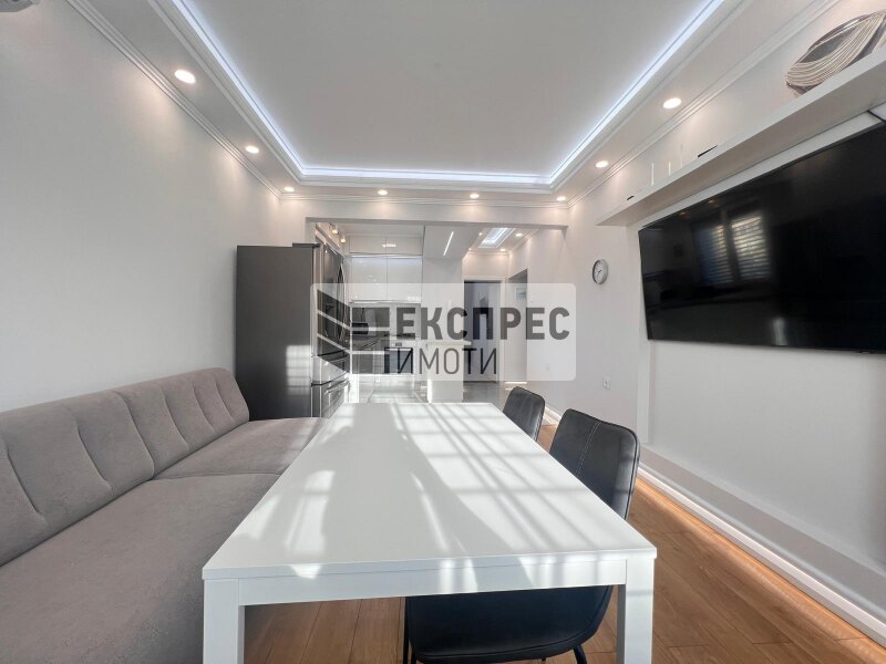 Експрес имоти предлага на Вашето внимание, новообзаведен луксозно ремонтиран четиристаен апартамент в района на пазар Чаталджа, медицински университет , град Варна.  Жилището се намира в сграда с  добре поддържани общи части.  Апартаментът се състои от всекидневна с кухненска част, три спални, една от които със собствена баня с тоалетна, втора баня с тоалетна, коридор, и  две тераси.  Жилището се предлага напълно и луксозно обзаведено и оборудвано.  Отоплението е с климатици. Апартаментът има топло и шумоизолация на всички стени.