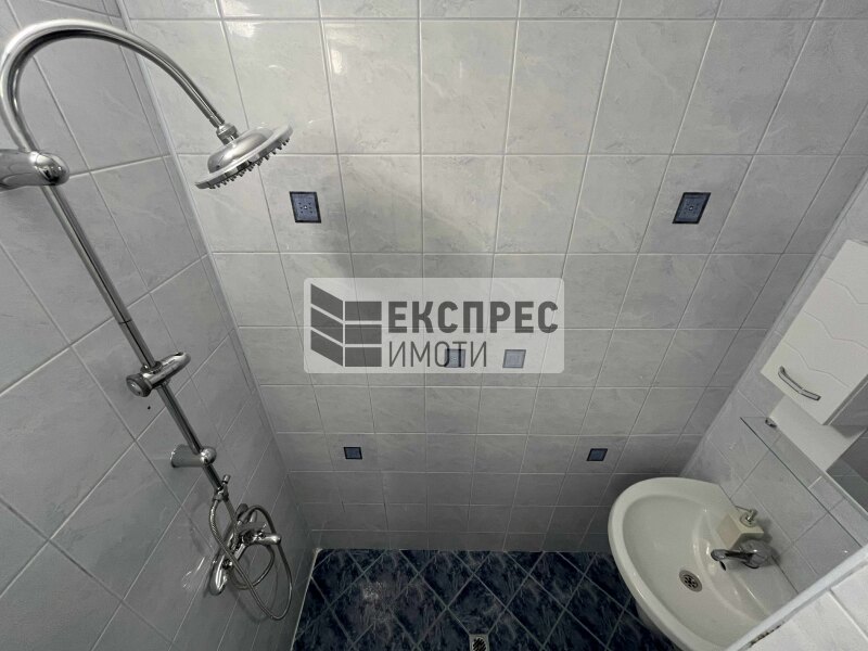 Express Imoti bietet Ihnen eine möblierte Einzimmerwohnung im Stadtteil Kolhozen Pazar in Varna, in der Nähe der Kathedrale. In der Nähe befinden sich Unterhaltungs- und Bildungseinrichtungen, Supermärkte und Haltestellen des öffentlichen Nahverkehrs. Die Wohnung besteht aus einem Wohnzimmer mit Kochnische, einem Schlafzimmer mit Einbauschrank, einer Waschküche, einem Badezimmer mit WC, einem Eingangsbereich und einer kleinen Terrasse.