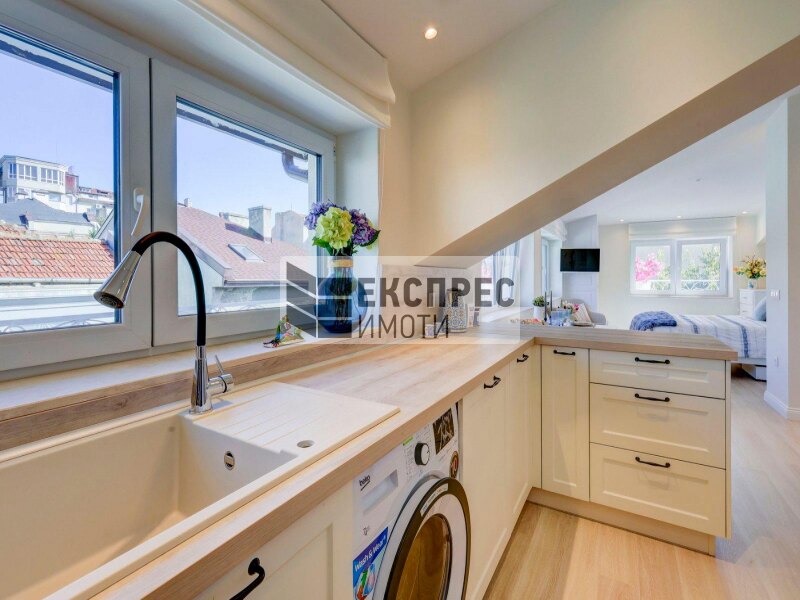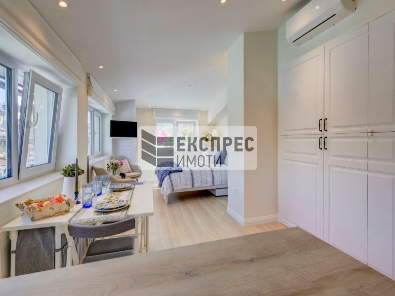 Express Properties bietet zur Miete ein luxuriöses Einzimmerstudio an, das komplett mit neuen, maßgefertigten Möbeln ausgestattet ist. Das Studio bietet eine stilvolle und funktionale Umgebung, ideal sowohl für eine Einzelperson als auch für ein Paar.