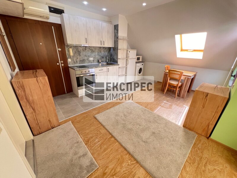 EXPRESS REAL ESTATE bietet ein komplett möbliertes Studio zur Miete an, gelegen in ruhiger und kommunikativer Lage im Bezirk. Levski, in unmittelbarer Nähe zum Blvd. "Dubrovnik". Die Wohnung liegt im Dachgeschoss eines Neubaus mit gepflegten Gemeinschaftsräumen.