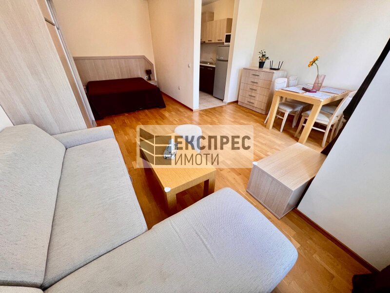 Express Properties bietet Ihnen eine neue, möblierte Wohnung zur Miete in der Gegend um St. Konstantin und Elena in Warna, in Strandnähe. Die Wohnung befindet sich in einem Neubau mit Aufzug und gepflegten Gemeinschaftsbereichen. Öffentliche Verkehrsmittel und Supermärkte sind in unmittelbarer Nähe. Sie besteht aus einem Zimmer mit Kochnische, einem Schlafzimmer, einem Badezimmer mit WC, einem Flur und einer Terrasse. Die Wohnung ist komplett möbliert und ausgestattet. Eine Klimaanlage sorgt für angenehme Temperaturen.